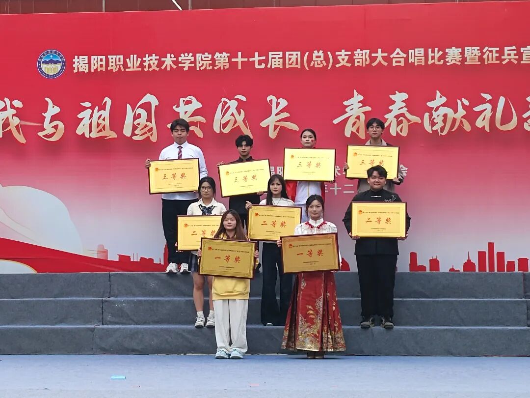 我系团总支大合唱队伍凭借真挚的情感与整齐的演绎,在此次大合唱比赛中荣获三等奖!这份荣誉不仅是对我们团队协作与青春风采的认可,更是对每一位成员辛勤付出的最好回报!